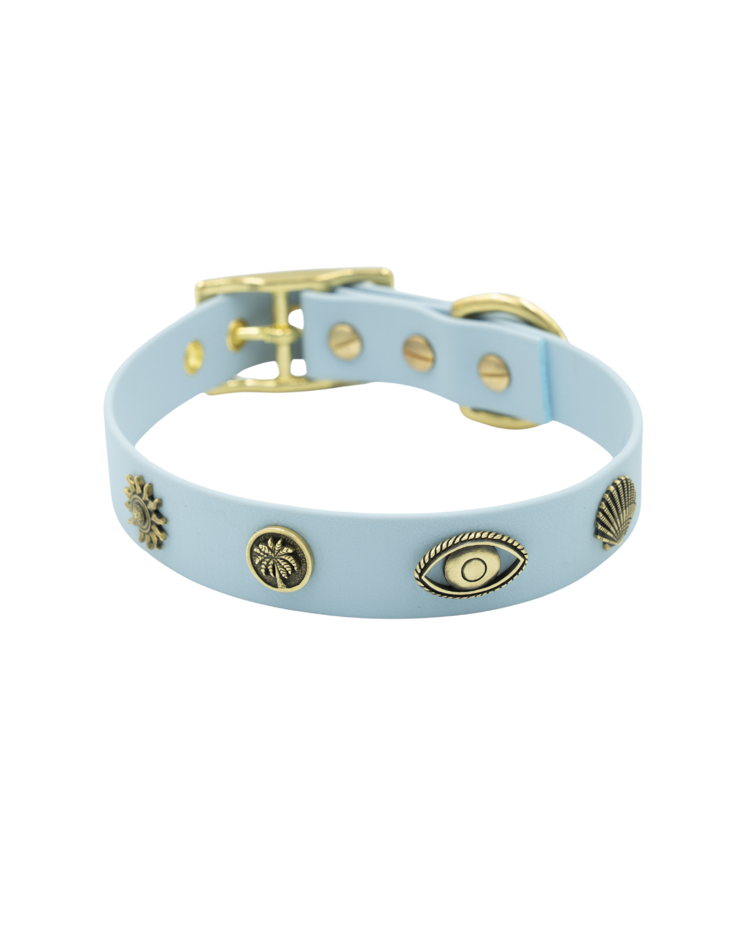 Nani Dogwear schenkt dir einen ganz neuen Look für deinen Hund: In unseren Produkten spiegelt sich die Liebe für Palmen, Sonne und das tropische Meer wieder. Schmuckelemente aus hochwertigem Messing, treffen auf eine wunderschöne tropische Farbpalette.
