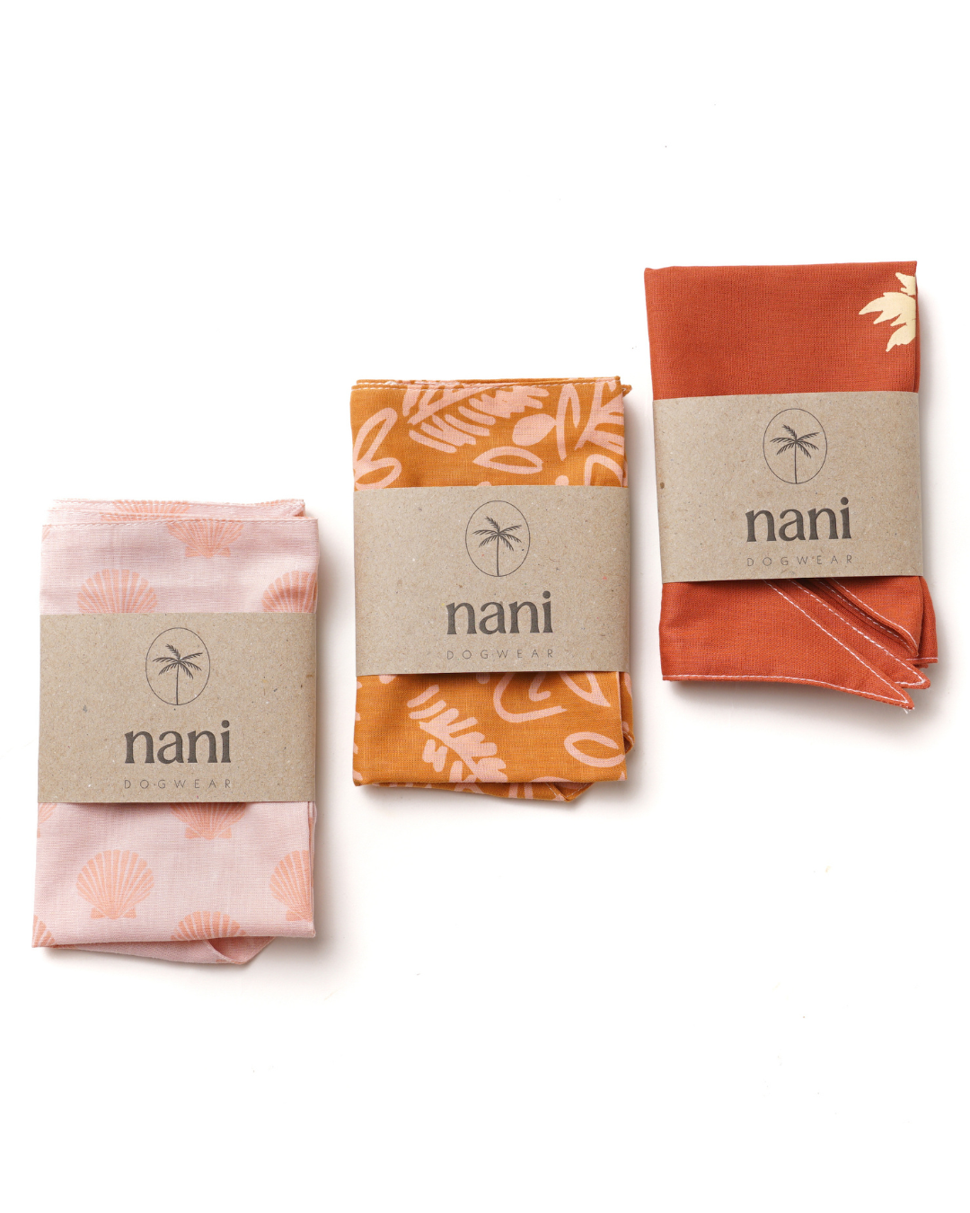 Unsere handgemachten Bandanas sind das perfekte It-Piece um den tropischen Look deines Hundes zu vervollständigen. Unsere Bandanas bestehen zu 100% aus Baumwolle für das Maximum an Komfort.